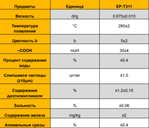 Полиэфирный гранулят EP-B311 для бутылок – это PET высокополимерный материал, который может использоваться в качестве упаковочного материала для пищевого масла. Данный материал главным образом предназначен для заливки пищевого масла, спиртного и PET материалов.
